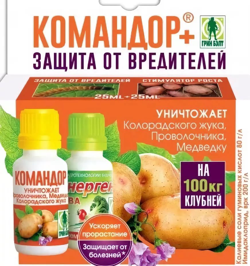 -«Командор» вызывает быструю гибель не только у колорадского жука, но и у других — белокрылок, проволочников, тли, цикадок, трипсов, минер и иных поверхностных огородных прожорливых вредителей.